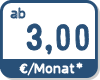 Schon ab EUR 3,00 pro Monat (zuzüglich einer einmaligen Einrichtungspauschale von EUR 19,00) erhalten Sie unser Paket Web-Visitenkarte!